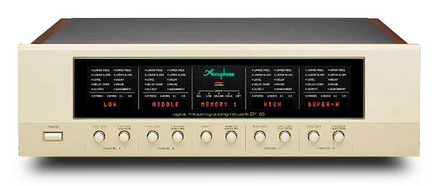Сеть с цифровым частотным разделением Accuphase DF-65 использует самые лучшие цифровые технологии во всех аспектах, включая высокоскоростной 40-битный DSP с плавающей запятой. Стандартная конфигурация устройства поддерживает обработку сигналов для четырехканальных систем. Высокоточные цифровые фильтры предлагают выбор из 59 точек среза и до 96 дБ / октавное затухание. Встроенная функция временного выравнивания, регулируемая с шагом 0,5 см, и компенсатор задержки для автоматического смещения любых задержек в цепи фильтра. Режим монофонического вывода обеспечивает высокую универсальность для различных конфигураций.